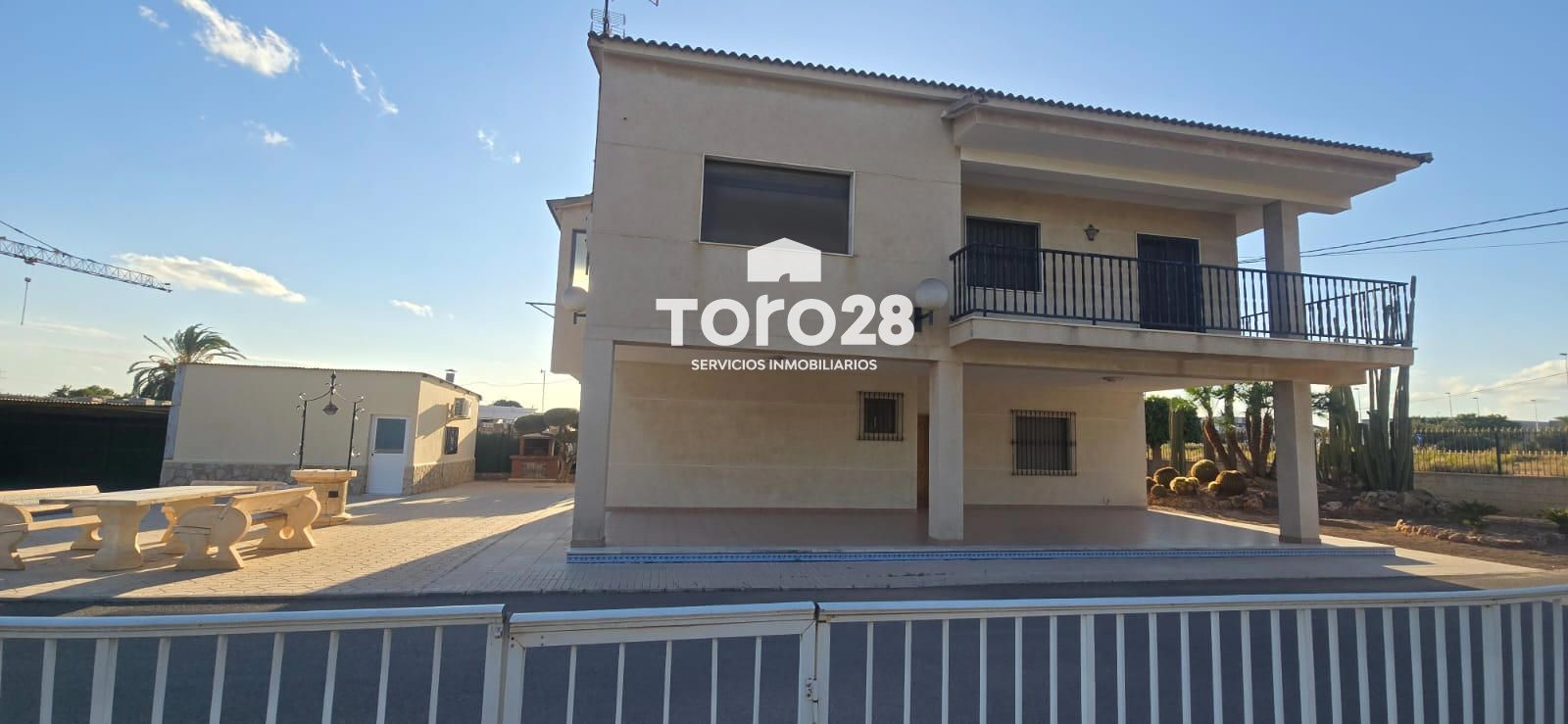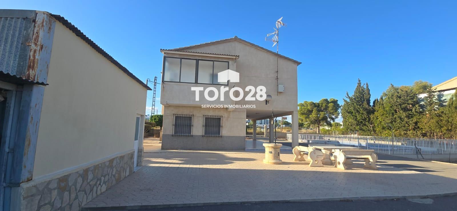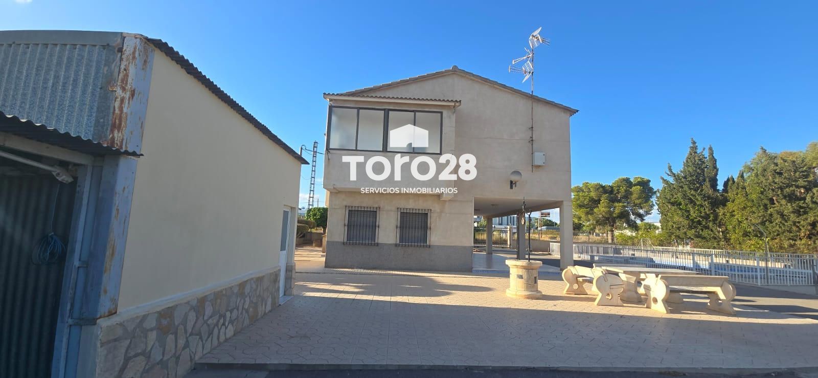 CHALET INDEPENDIENTE EN PARTIDA DE TORRELLANO.6.868m2 con vivienda de 231m2  construida en 2 plantas: en panta baja tiene 1 dormitorio, 1 baño con plato de ducha, cocina equipada y amueblada, salón comedor con chimenea , distribuidor y porche de 20m2.en planta segunda: hay 3 dormitorios,  un  baño con bañera, 1  cocina con  galería, y terraza de 20m2 distribuidor, salón comedor en planta baja y salón comedor .en la parcela hay aparcamiento para 4 coches, piscina, barbacoa, cocina exterior de 20m2, aseo en exterior, jardín de diseño.Cerca de aeropuerto, polígono industrial, gasolinera, colegio, farmacia, supermercados, restaurantes, (cerca de todos los servicios)Para más información, puede contactar con nosotros, inmobiliaria Toro28 S.L. estaremos encantados de atenderle, www.toro28.es 66 44 77 256 Antonia