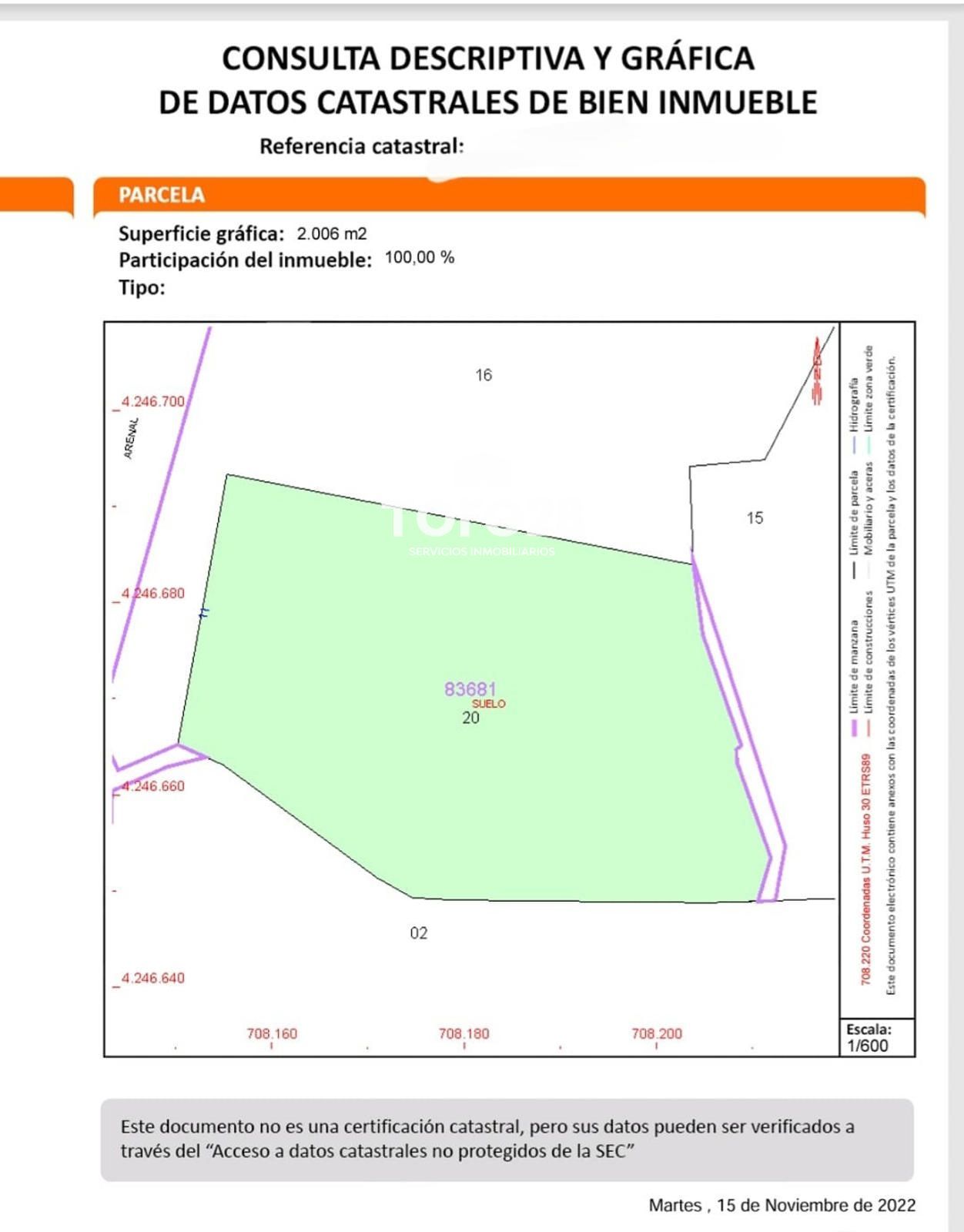 PARCELA URBANA EN REBOLLEDO2.008 m2 de parcela urbana en Rebolledo de Alicante a 5min de la parada del bus, parcela cuadrada, con los suministros cerca para poder contratarlos.Cerca de parada del bus línea 07 Óscar Esplá – Rebolledo.Escuela en Rebolledo, gasolinera, tiendas de comestibles, bares restaurantes en la avenida principal de Rebolledo.Para más información, puede contactar con nosotros, inmobiliaria Toro28 S.L. estaremos encantados de atenderle, www.toro28.es 66 44 77 256 Antonia