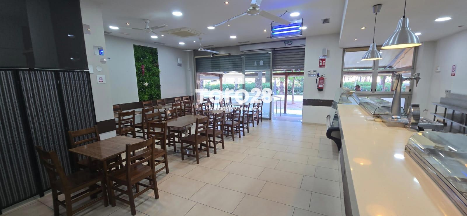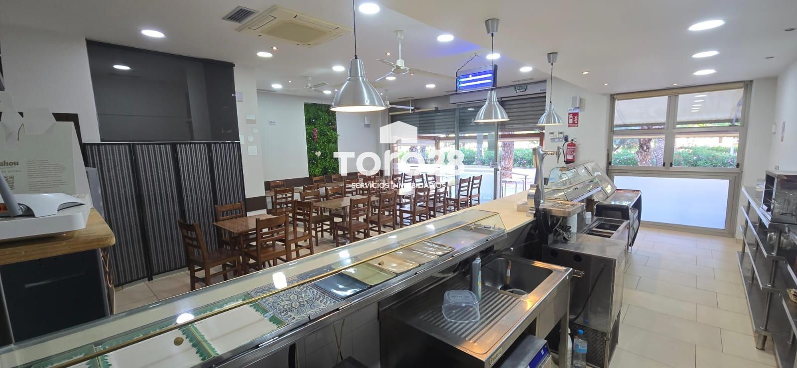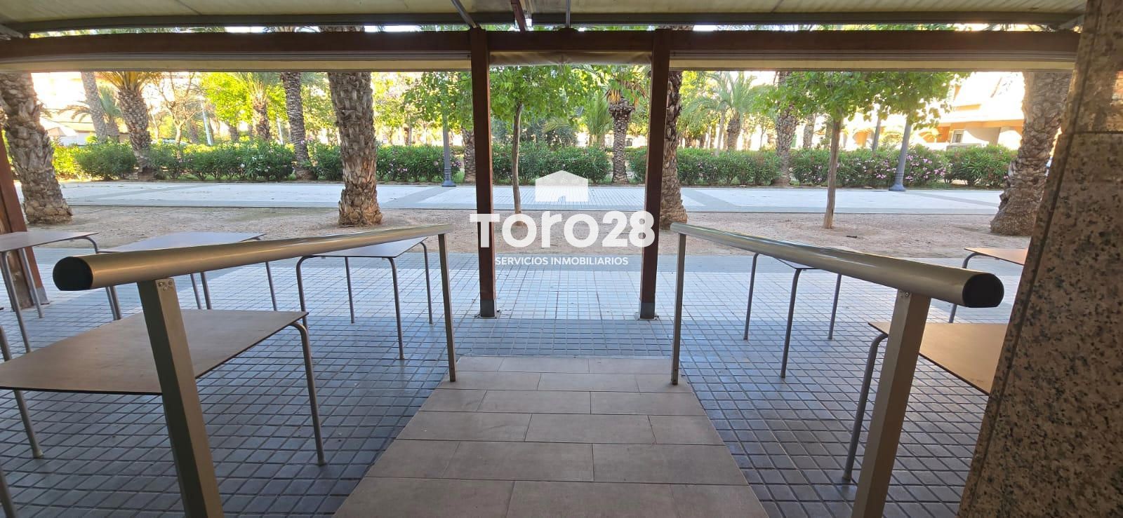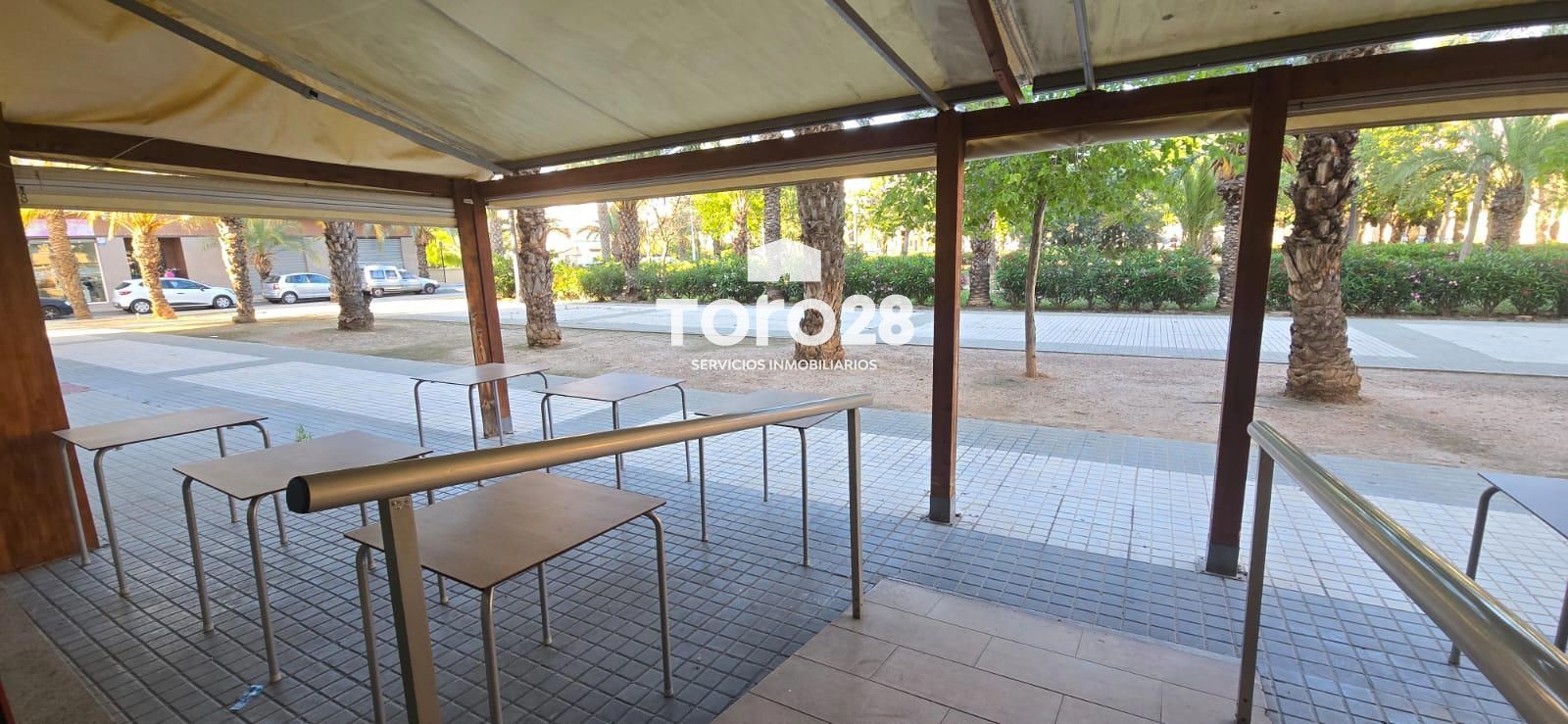 EN FRENTE DEL PARQUE Y PLAZA DE LAS BAYAS DE ELCHE.–LOCAL INSONORIZADO–100m2 de LOCAL Y 30m2 de TERRAZA CUBIERTA CON CAPACIDAD PARA 10 MESAS CON SUS SILLLAS.fachada con 3 persianas motorizadas, fachada con cristal y puerta de cristalse accede al restaurante mediante rampa, preparada para entrar al local sin escaleras.Dentro del local hay 7 mesas de madera color roble con 4 sillas por mesa (28 sillas), se pueden añadir más.Maquina dispensadora de tabaco, televisor, 2 maquinas de aire acondicionado empotradas en el techo del local, 2 botelleros de pie, 1 botellero bajo mostrador, 2 vitrinas de frio, 1 grifo de cerveza Mahou (lo cambian si usas otras marcas), Dos aseos, uno de señaras y minusválidos y otro de caballeros con urinario empotrado en pared para caballeros.Cocina:Se alimenta con botellas de gas, cocina con salida de humos y campana  industrial, mobiliario y lejas, en acero inoxidable especial para cocinas de restauración, frigorífico, 2 freidoras, 2 planchas de asado. Para más información, puede contactar con nosotros, inmobiliaria Toro28 S.L. estaremos encantados de atenderle, www.toro28.es 66 44 77 256 Antonia