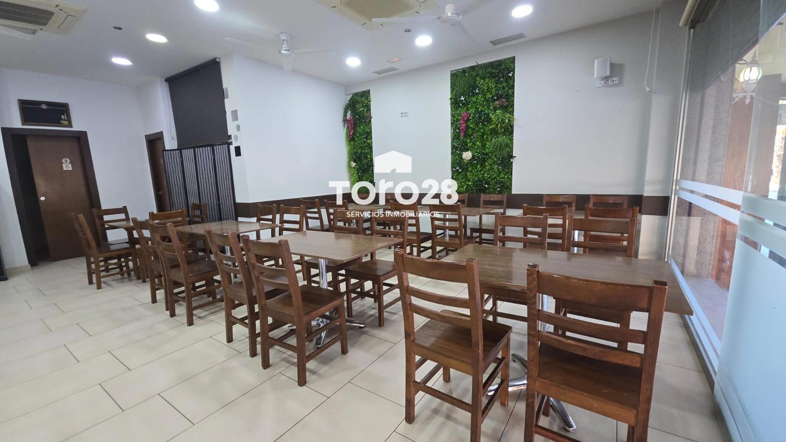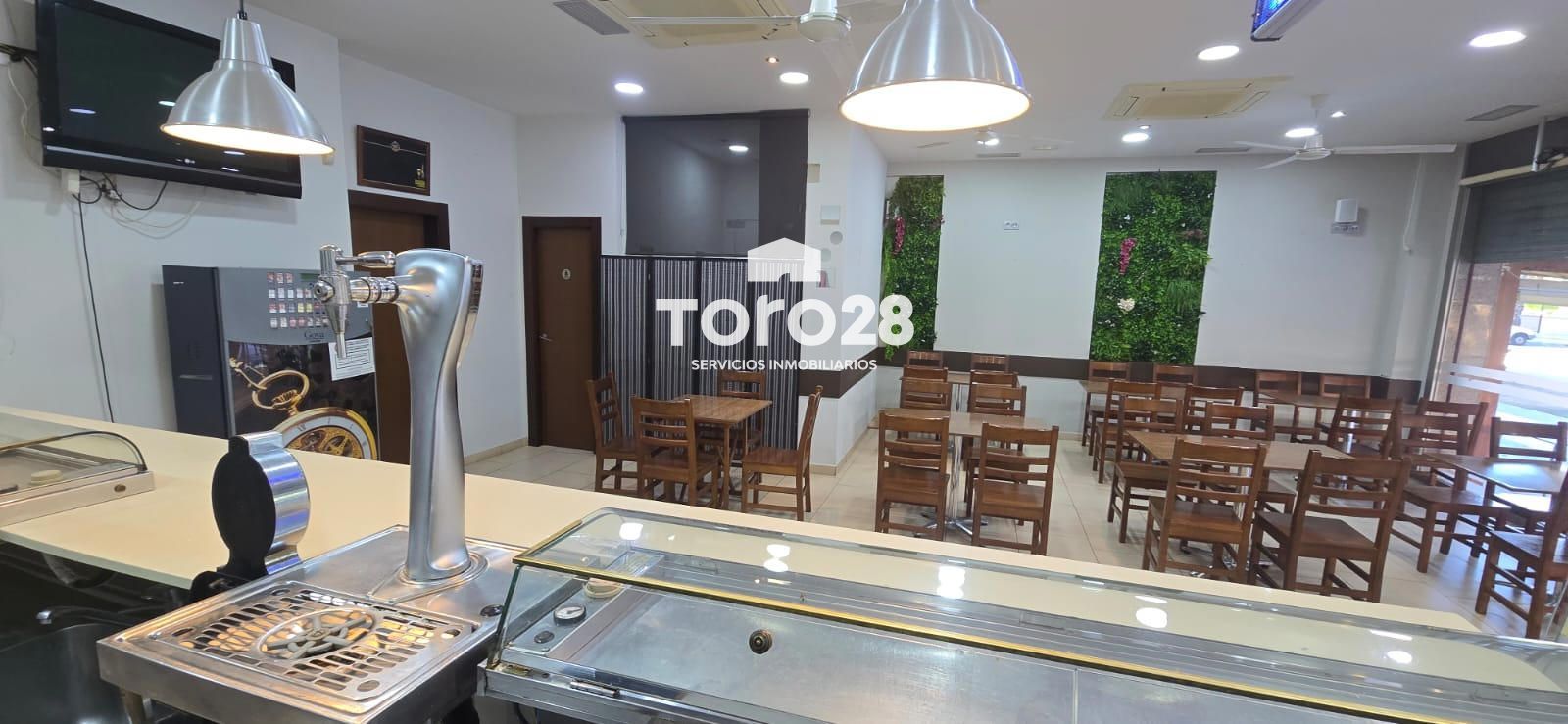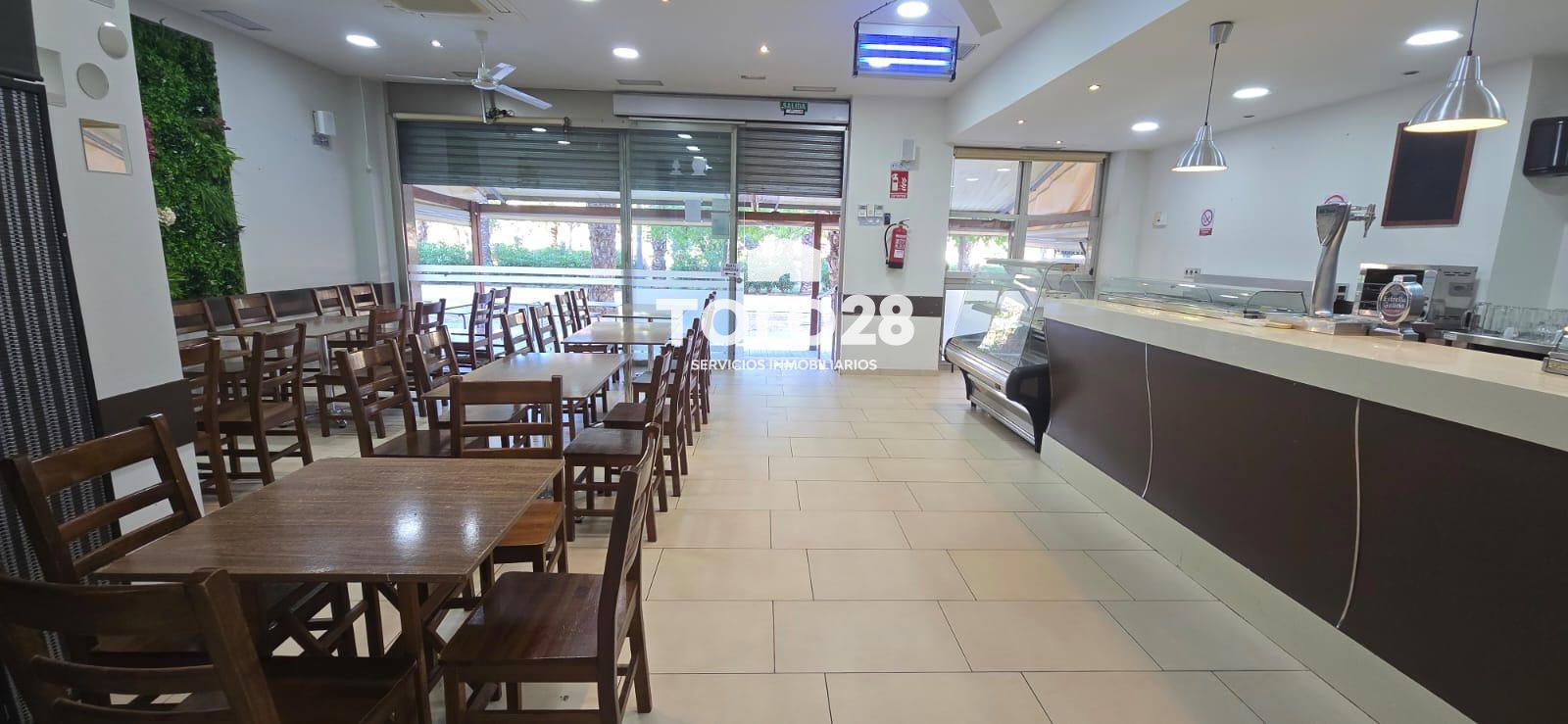 EN FRENTE DEL PARQUE Y PLAZA DE LAS BAYAS DE ELCHE.–LOCAL INSONORIZADO–100m2 de LOCAL Y 30m2 de TERRAZA CUBIERTA CON CAPACIDAD PARA 10 MESAS CON SUS SILLLAS.fachada con 3 persianas motorizadas, fachada con cristal y puerta de cristalse accede al restaurante mediante rampa, preparada para entrar al local sin escaleras.Dentro del local hay 7 mesas de madera color roble con 4 sillas por mesa (28 sillas), se pueden añadir más.Maquina dispensadora de tabaco, televisor, 2 maquinas de aire acondicionado empotradas en el techo del local, 2 botelleros de pie, 1 botellero bajo mostrador, 2 vitrinas de frio, 1 grifo de cerveza Mahou (lo cambian si usas otras marcas), Dos aseos, uno de señaras y minusválidos y otro de caballeros con urinario empotrado en pared para caballeros.Cocina:Se alimenta con botellas de gas, cocina con salida de humos y campana  industrial, mobiliario y lejas, en acero inoxidable especial para cocinas de restauración, frigorífico, 2 freidoras, 2 planchas de asado. Para más información, puede contactar con nosotros, inmobiliaria Toro28 S.L. estaremos encantados de atenderle, www.toro28.es 66 44 77 256 Antonia