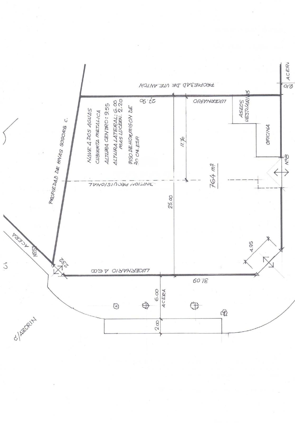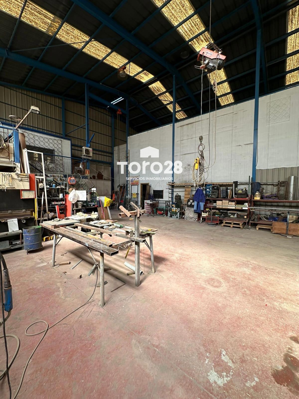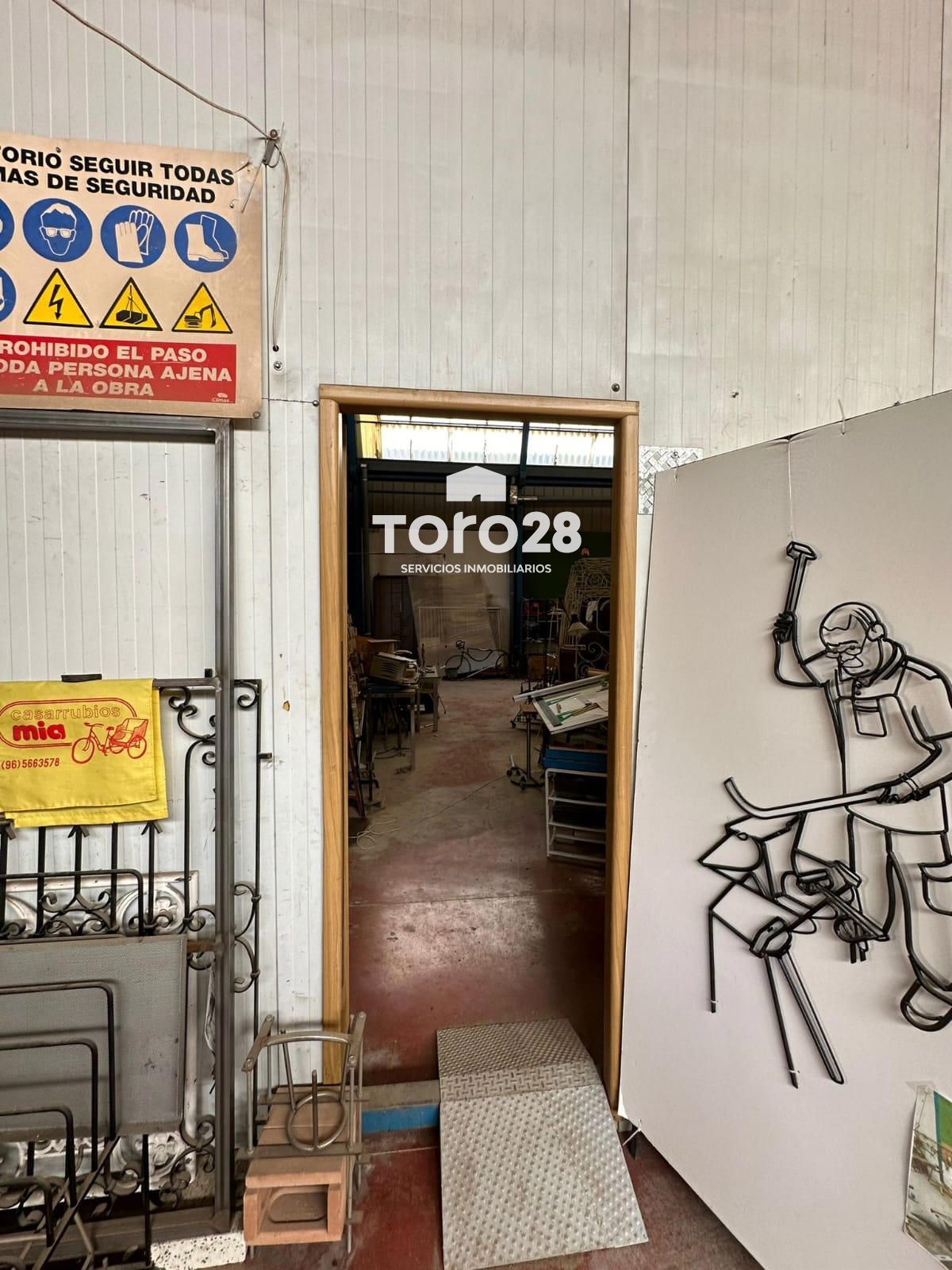 Nave industrial en el polígono de San Vicente.superficie de 764m2 (descontando chaflan)construcción con estructura metálica a dos aguas, con vigas IPN y HPN, lucernarios laterales en toda su longitud.Cubierta con chapa de acero galvanizado trapecial, cumbrera y placas translucida repartidas, respiraderos superiores.Altura central de la cumbrera a suelo: 9,50m, altura de muros 6,00m, más cerramiento vertical metálicoPavimento continuo en hormigón fratasado de 30cm de espesor y pulido en fresco con plas giratorias, suelo color granate, tiene 3 puertas de acceso (4,20×4,35), (3,60×3,80), (1,68×2,05) con puerta de paso a personas.División interior longitudinal coincidiendo con la cumbrera de unión de las dos aguas, pilares metálicos con vigas HPN y paneles tipo sanwich de 6m de altura y libres los 3,50m restantes tasta la cumbrera, esta división no forma parte de la estructura inicial de la nave, por lo que se podría desmontar en caso de necesidad o conveniencia. Esta división tiene dos puertas muy grandes de comunicación.Hay instalación eléctrica industrial de 13,5kw, en la mitad derecha con cuadros para maquinaria y focos de alumbrado en el techo de toda la nave.Instalación de tubería metálica de aire comprimido con varias tomas en los laterales de la parte derecha.Instalación de agua en toda la nave.En la mitad de la derecha hay oficina con aseo y vestuarios para personal de taller con WC y duchas, en la parte baja.Encima hay un despacho y una sala de juntas con acceso por escalera exterior dentro de la nave, y ventanas a la calle.Para más información, puede contactar con nosotros a través de la inmobiliaria Toro28 S.L. www.toro28.es 66 44 77 256 Antonia Inscrita en el registro con el número RAICV1442, conforme se requiere en el Decreto 98/2022 de 29 de julio de 2022, del Consell de la Comunitat Valenciana, por el que se regula el Registro de Agentes de Intermediación Inmobiliaria de la Comunitat, cumpliendo con los requisitos. Asociación de agentes de la propiedad inmobiliaria API, nº de asociado A-110.