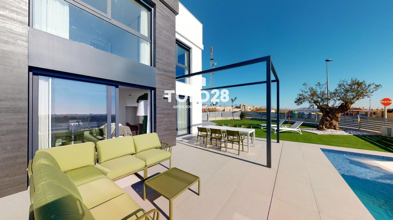 Descubre esta impresionante propiedad ubicada en la tranquila y exclusiva zona de Bonalba-Cotoveta, Mutxamel. Este moderno chalet, diseñado para ofrecer el máximo confort y lujo, cuenta con una amplia superficie construida de 327 m² sobre un generoso terreno de 531 m². Disfruta del placer de tener tu propia piscina privada rodeada por exuberantes jardines que crean un oasis personal ideal para relajarte o entretener a tus invitados. Con tres elegantes habitaciones y tres baños completos, este hogar está listo para entrar a vivir sin necesidad de reformas adicionales; simplemente trae tus maletas. La calidad constructiva es excepcional e incluye características como puerta blindada y espacios amplios llenos de luz natural gracias a sus grandes ventanales que ofrecen vistas al exterior perfectas todo el año. Además, su ubicación privilegiada te sitúa a solo 3200 metros del mar Mediterráneo mientras disfrutas del clima cálido durante todas las estaciones; cercanía también garantizada hacia colegios reconocidos así como hospitales y centros comerciales esenciales en la vida cotidiana hacen aún más atractiva esta oferta única: ¡una increíble oportunidad que no podrás dejar pasar!Para más información, puede contactar con nosotros, inmobiliaria Toro28 S.L. estaremos encantados de atenderle, www.toro28.es 66 44 77 256 Antonia
